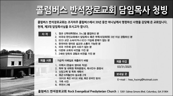 [GA] 조지아 컬럼버스 반석장로교회 담임목사 청빙