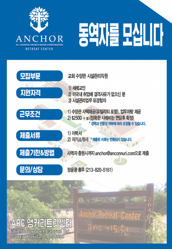 | 교회주소 | 10000 Foothill Blvd., Lake View Terrace, CA, 91342 | 홈페이지 | https://anconnuri.com | |||