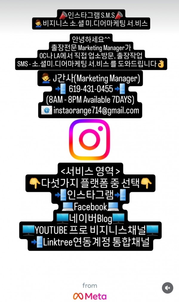 <인스타그램 S.M.S(비지니스 소.셜 미.디어마케팅 서.비스> 를 도와드립니다
