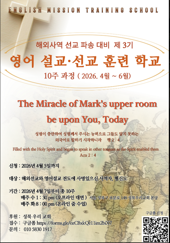 영어로 복음을 ! 제 3기 영어 선교 설교 훈련 과정 모집 ( 2026. 4월 ~6월 )