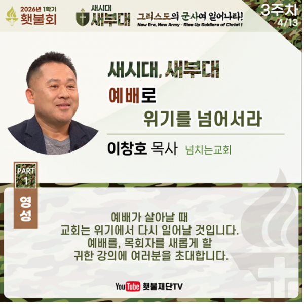 2026년 1학기 횃불회 3주차 4/13 강의 안내