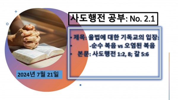 주는 사랑체 교회. 사도행전 공부 #2.1. 율법에 대한 기독교의 입장: 교회는 무엇을 해야 하는가? 행 1:6; 갈 5:6.…