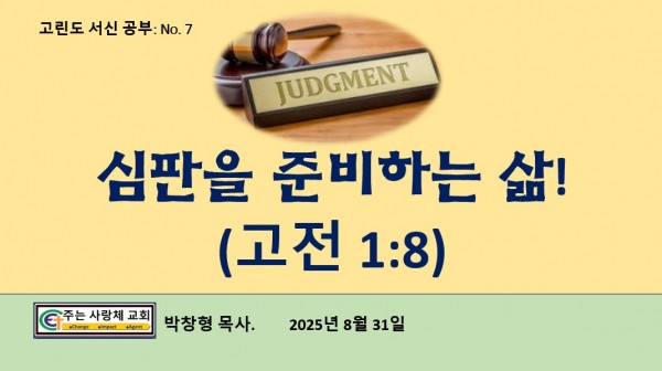 고린도 서신 공부 #7. 심판을 준비하는 삶. 본문: 고전 1:8.