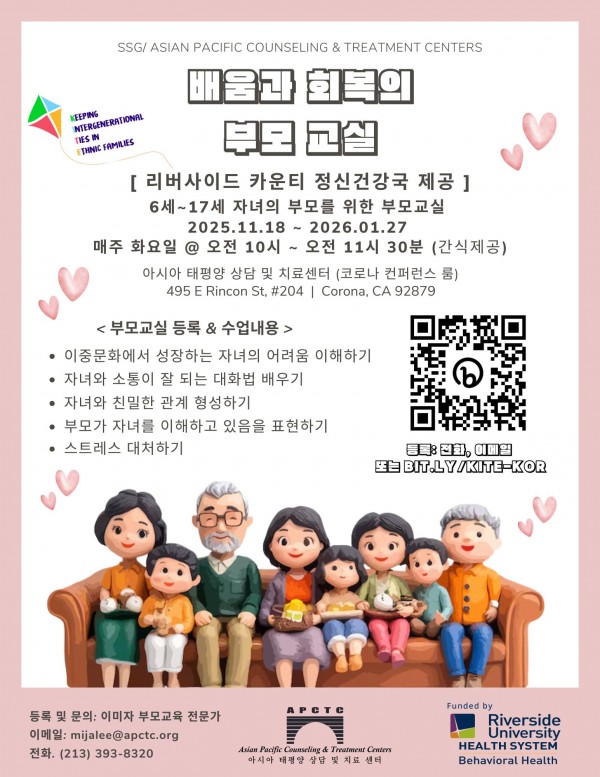 [CA] 리버사이드 카운티 정신건강국 제공 무료 부모교실 안내입니다.