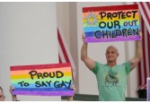▲미국 플로리다주 탈라하시 주의회 건물 인근에서 시위대가 동성애 교육 금지 법안을 비판하는 문구를 들고 시위를 벌이고 있다.(사진출처=연합뉴스)미국 플로리다 주 의회가 유치원 내 동성애 교육을 금지하자 글로벌 엔터테인먼트 기업 디즈니가 정치자금 기부를 중단한다고 밝혀 …