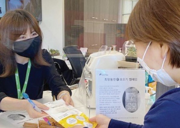 이에 뱅크오브호프 고객이 가까운 지점을 통해 본인 계좌에 동전 10개 묶음(roll) 이상을 입금하면 한국산 일회용 마스크 1팩을 증정한다.