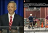 로버트 제프리스 박사 (사진: YouTube / @firstbaptistdallas의 화면 캡처. R: X/@OSHawkins의 스크린샷) 제일침례교 달라스의 역사적인 교회의 불타버린 잔해 속에서 청소팀은 설교단이 온전한 것을 발견했다. ChurchLeaders의 보…